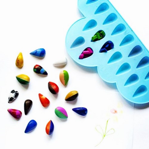 Восковые мелки часто крошатся и ломаются. Соберите обломки разных цветов, положите в силиконовые формы для запекания и поставьте в духовку. Когда мелки остынут, ребенок с удовольствием порисует ими в новой непривычной форме