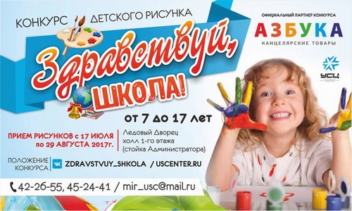Уже совсем скоро с 17 июля 2017 года начнется прием работ на ежегодный традиционный конкурс детского рисунка "Здравствуй, школа!", приуроченный к одноименной всеми известной ярмарке в Ледовом Дворце "Здравствуй, школа!-2017".